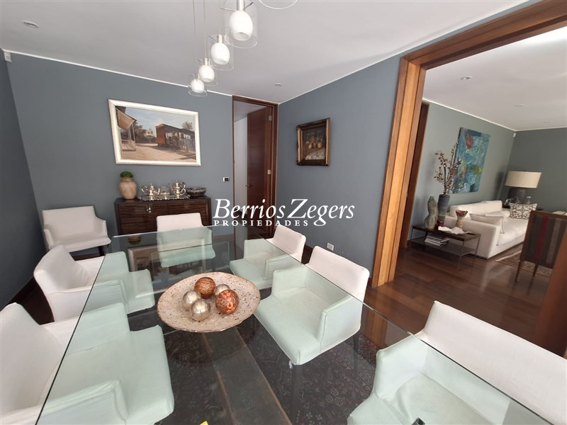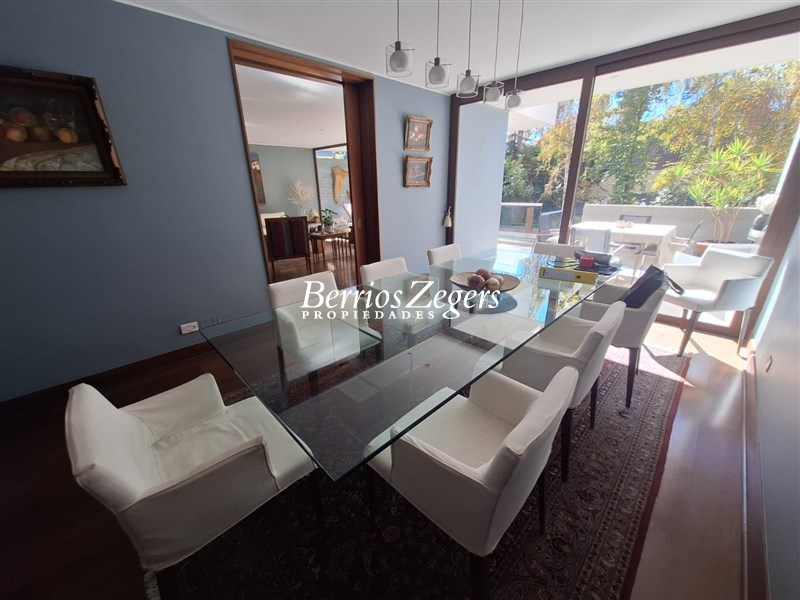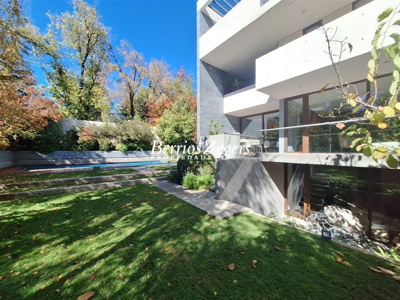 Extraordinario y luminoso Departamento en Primer piso 420mt2 aprox / 520mt2 en los Dominicos Antiguo con piscina , quincho.4 Dormitorios 5 baños mas servicios completos. Amplio hall de entrada baño de visitas, living- comedor separados muy amplios con salida a estupenda terraza, patio y rica piscina. Cocina completamente equipada con gran comedor de diario ,Isla, logia y pieza de servicio con su respectivo baño. -1 Sala de estar, dormitorio, mas un baño con salida a terraza con quincho. Segundo piso 3 dormitorios todos en suite con w-closet, sala de estar. Dormitorio principal muy amplio con salida a terraza y escritorio. Todos los ventanales termopanel, calefacción por losa radiante( independiente) Finísimas terminaciones ,piso de madera y porcelanato. Cuenta con 4 estacionamientos y bodega. Estacionamientos de visita, vigilancia 24/7.