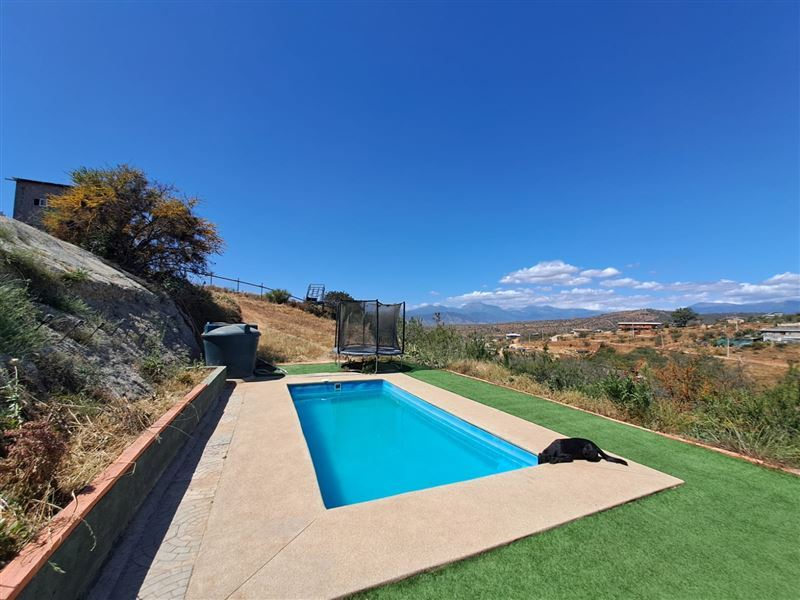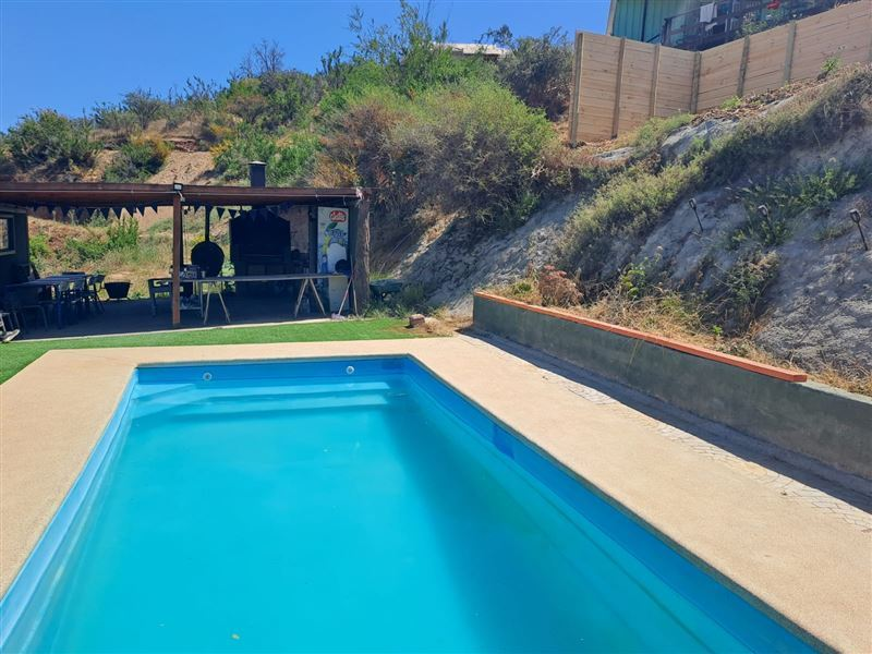 Hermosa parcela, ubicada en el valle de peñablanca con vista a limache, comoda casa de estructura metalica forrada con placas de acero, cuenta con gran terraza con vista, ademas tiene una cabaña adicional con dos dormitorios, y piscina, quincho, horno de barro. Equipada para eventos.
