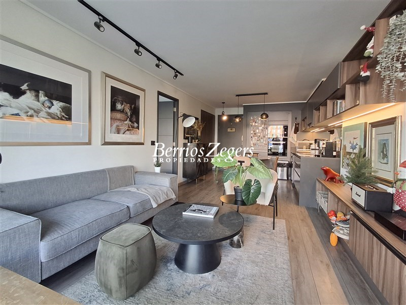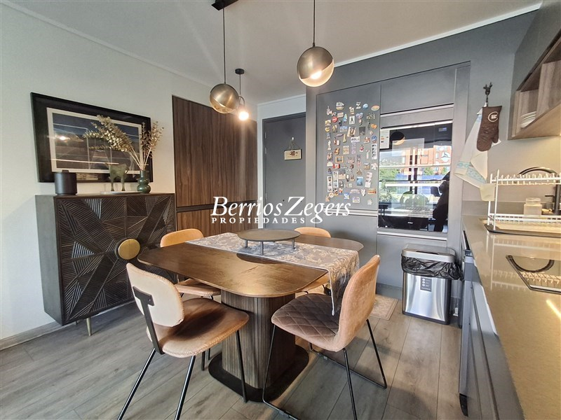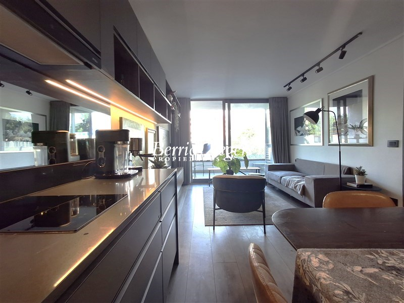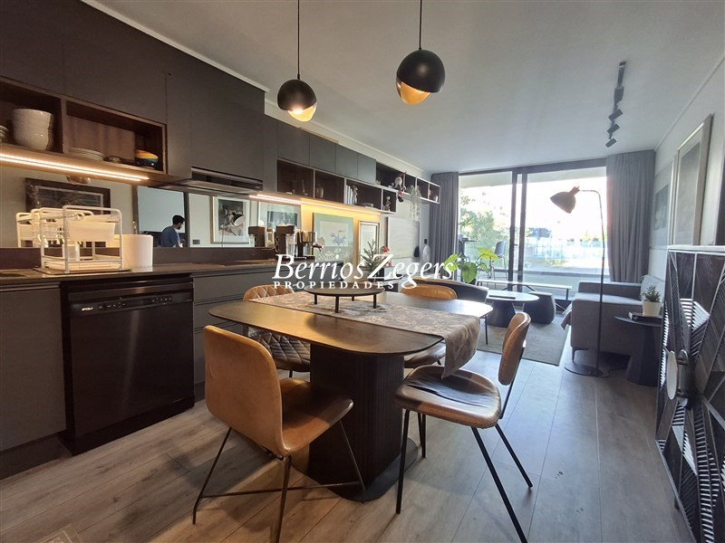Lindo departamento, de 60 mts aprox. incl terraza, ubicado en la Dehesa Central, excelente conectividad hacia Av. Las Condes, Av. La Dehesa y Costanera Norte, cercano al Portal de la Dehesa, colegios, restaurantes, parques de entretención, etc, como nuevo, luminoso, vista Oriente, tiene; recibos juntos con cocina integrada, equipada completamente, con refrigerador empotrado, horno microondas, horno eléctrico, cocina encimera vitrocerámica, comedor con rack anclado al muro diseñado para no perder la línea, hasta la salida a la terraza. Tiene un amplio dormitorio en suite, con espacio para escritorio. cuenta además con w-closet y baño con shower y ventana, lo que da luz natural. 1 estacionamiento, 1 bodega. El condominio cuenta con, Piscina, gym, Co-work. salón de eventos equipado, estacionamientos de visitas y espacio para baño de mascotas, y circuito de caminatas, cargador para autos aléctricos, seguridad 24/7