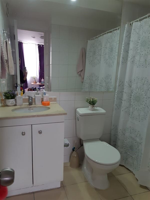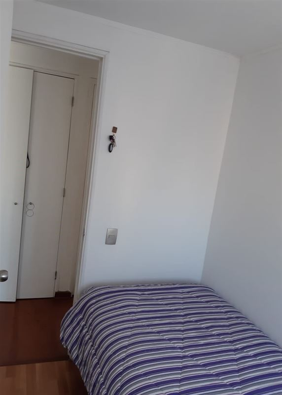 48 Mts2. Estupendo departamento en pleno centro de Santiago. 2 dormitorios, principal en suite con closet, dos baños, cocina americana equipada con encimera de 4 platos, campana y horno eléctrico. Living y comedor con salida hacia una luminosa terraza visita sur. 1 estacionamiento subterráneo. Edificio cuenta con gimnasio, piscina, lavandería, quinchos, sala de eventos, estacionamientos para visita, cámaras de seguridad y conserjería 24/7. A pocas cuadras de las estaciones de Metro Moneda(L1), Toesca (L2) y Parque Almagro (L3). Cercano al paseo Bulnes, supermercados, universidades, bancos, parques y múltiples comercios en general.