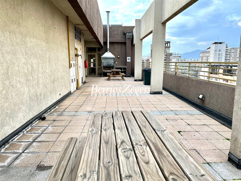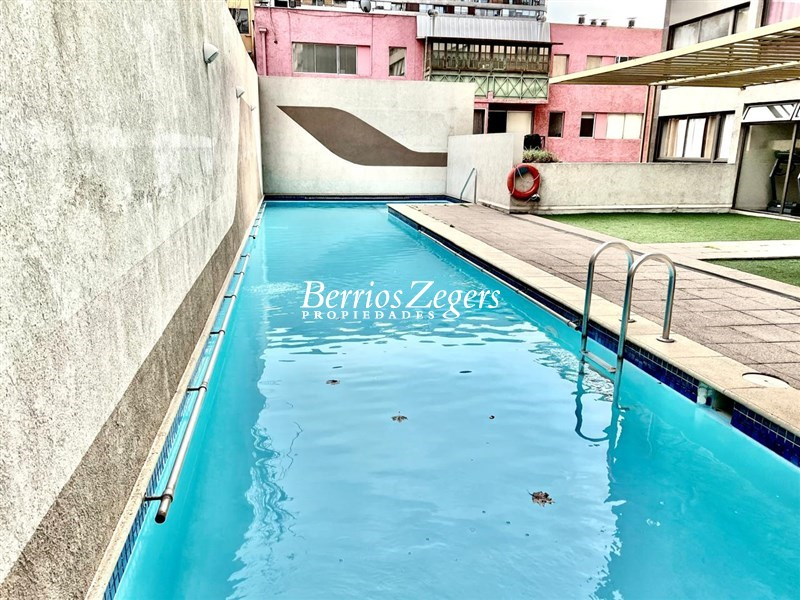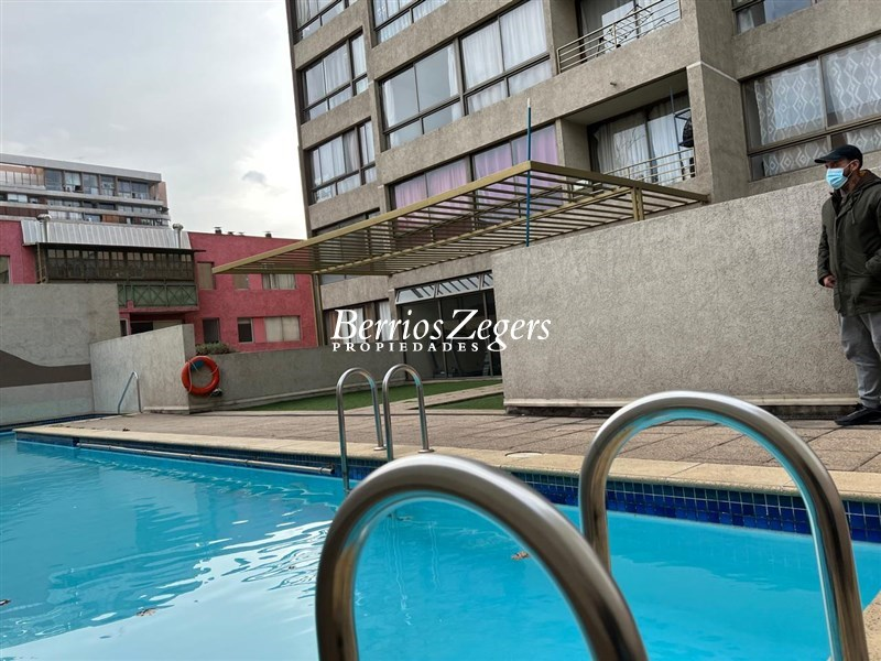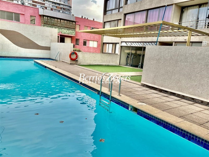 Estupendo departamento a pasos metro Santa Ana, 40 mts. aprox. recibos juntos con cocina integrada, 2 dormitorios, 1 baño con conexion lavadora, 1 estacionamiento, GC aprox $ 100.000.- Edificio cuenta con GYM, piscina, sala de eventos, lavandería, conserjeria 24/7.