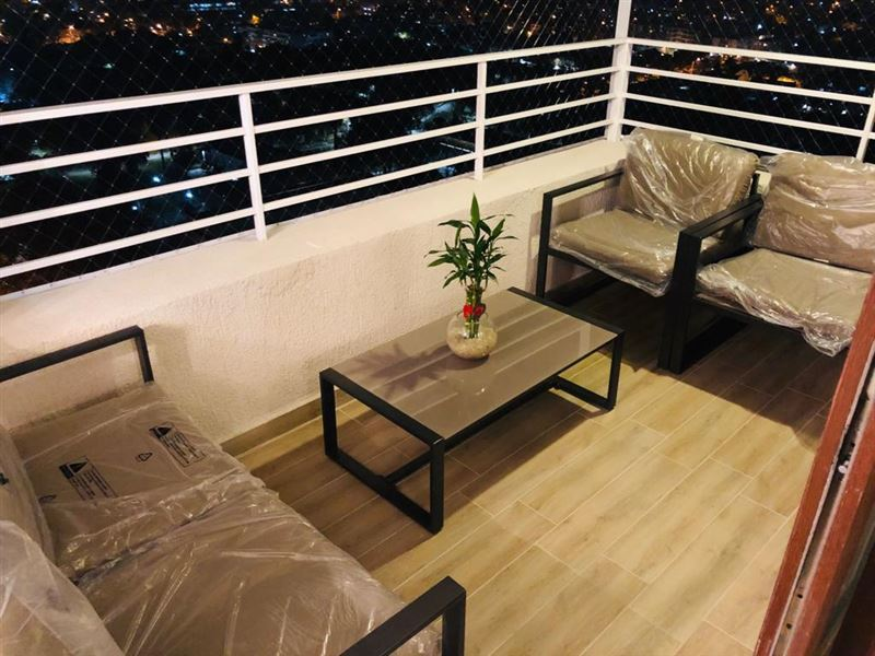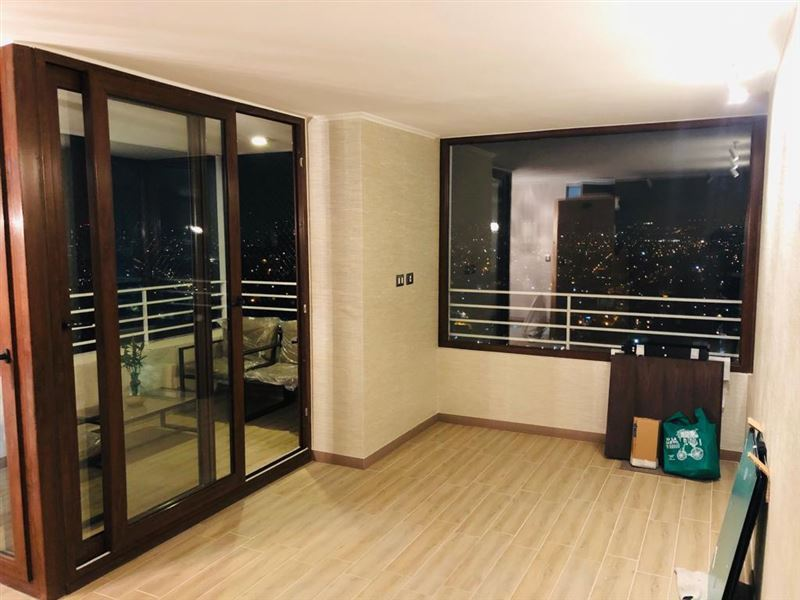 100 mts/ 6 mts aprox. ESPECTACULAR, VISTA PANORÁMICA 270 GRADOS .DEPARTAMENTO NUEVO, hall de entrada con mural de espejos biselados , living-comedor con piso de porcenalato con salida a terraza, cocina remodelada, logia, 3 dormitorios, uno en suite, piso flotante, 2 baños, orientación nor-oriente, vista completamente despejada, termopanel en todo el departamento, 2 estacionamientos, 1 bodega. Edificio cuenta con áreas verdes, piscina, gimnasio, estacionamientos de visita.