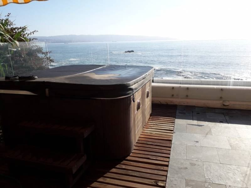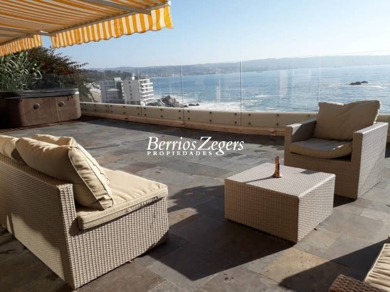Hermosa Vista al Mar, edificio aterrazado " Clasico " en Reñaca, idela para descanso con una inmensa terraza (90 M2) con barandas de cristal, con vidrios de seguridad, especialmente desarrollados para la cuidado de tu familia permite una vista inigualable. emplazado en AMPLIOS RECIBOS, comedor aparte, cocina amoblada tradicional , tres amplios dormitorios ppal, en suite, mas otro baño completo.1 estacionamiento y 1 bodega.