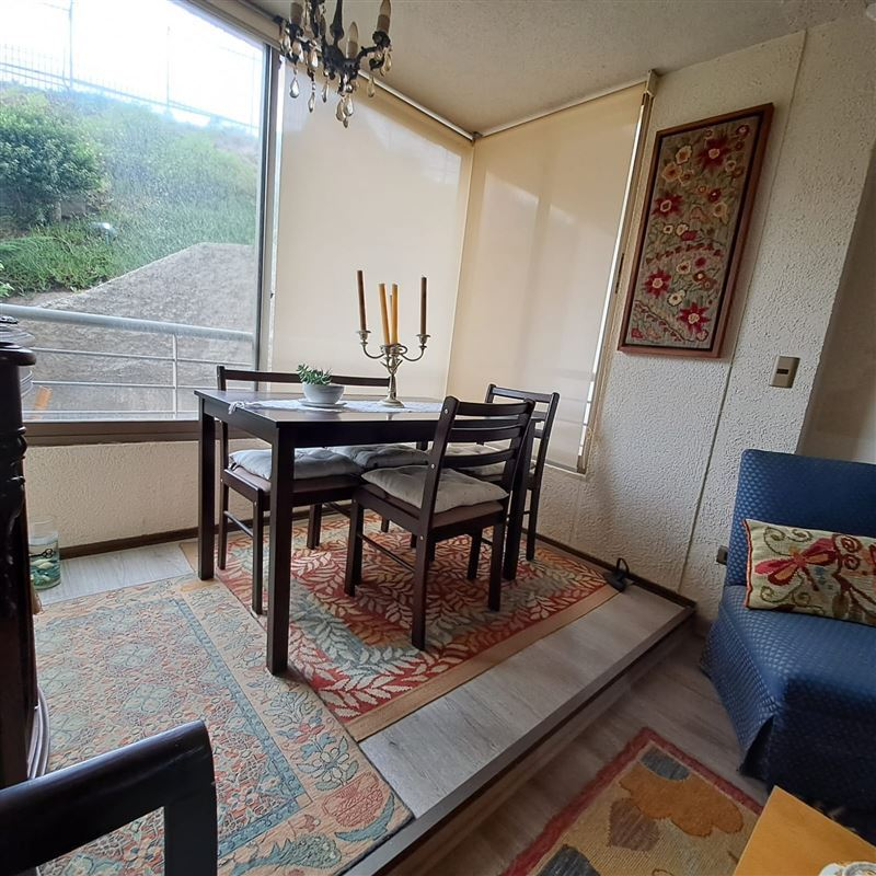 Departamento un dormitorio, con cocina integrada , con espacios, libres piscina, con vista al mar, depto central, a pasos del comercio de concon.