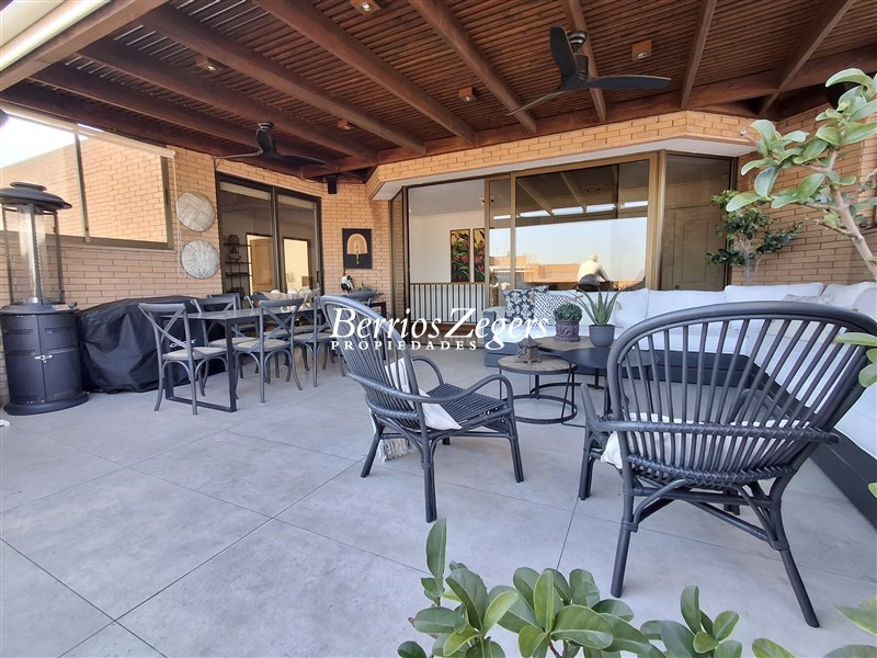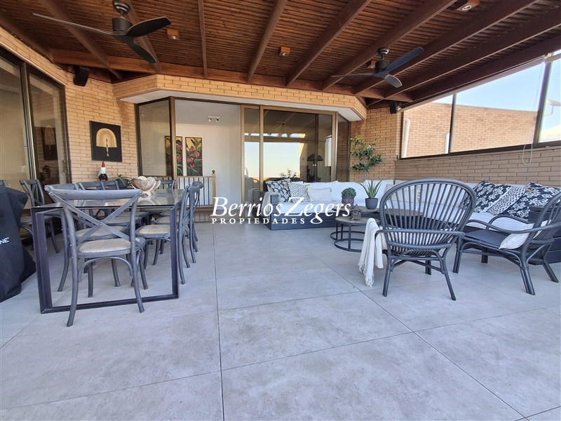 Precioso departamento Duplex, muy iluminado, Terraza Panorámica con Vistas despejadas, el cual esta distribuido de la siguiente manera; en 1er Piso: Hall de entrada, amplios recibos de living comedor separados, piso madera, ambos con salida a espaciosa terraza con vista panoramica a la cordillera y hacia Providencia, gran cocina equipada con encimera, horno eléctrico, piso y muros en porcelanato, con comedor de diario, y espaciosa logia, que conecta con pieza y baño de servicio, el cual podría ser un 6to dormitorio, ya que tiene entrada por el pasillo ppal tambien, baño de vista, dos dormitorios, ppal en suite con sala de estar, W-Closet y baño con jacuzzi, y otro baño completo para el 2do. dormitorio, salita de estar. En 2do. Piso; 3 dormitorios uno de ellos en suite, mas otro baño completo, pequeña salita, mas terraza panoramica con cortinas roller electricas lo que hace que se use la terraza en invierno quedando asi un espacio muy atractivo para usar en familia, con amigos,etc. calefacción por losa radiante y termopanel. El departamento tiene 4 espaciosos estacionamientos y 1 gran bodega. En invierno GC aprox $ 1.100.000 con calefacción y agua caliente incluida, lo que baja en temporada de verano a $ 800.000 aprox. (agua caliente incl.) El Edificio cuenta además con sala de eventos, GYM, parques, juegos infantiles, piscina. control de acceso 24/7, estacionamientos de visitas, a pasos de la Costanera Norte, supermercados, colegios, universidades, clinicas etc, todo en un sector residencial exclusivo. OPORTUNIDAD